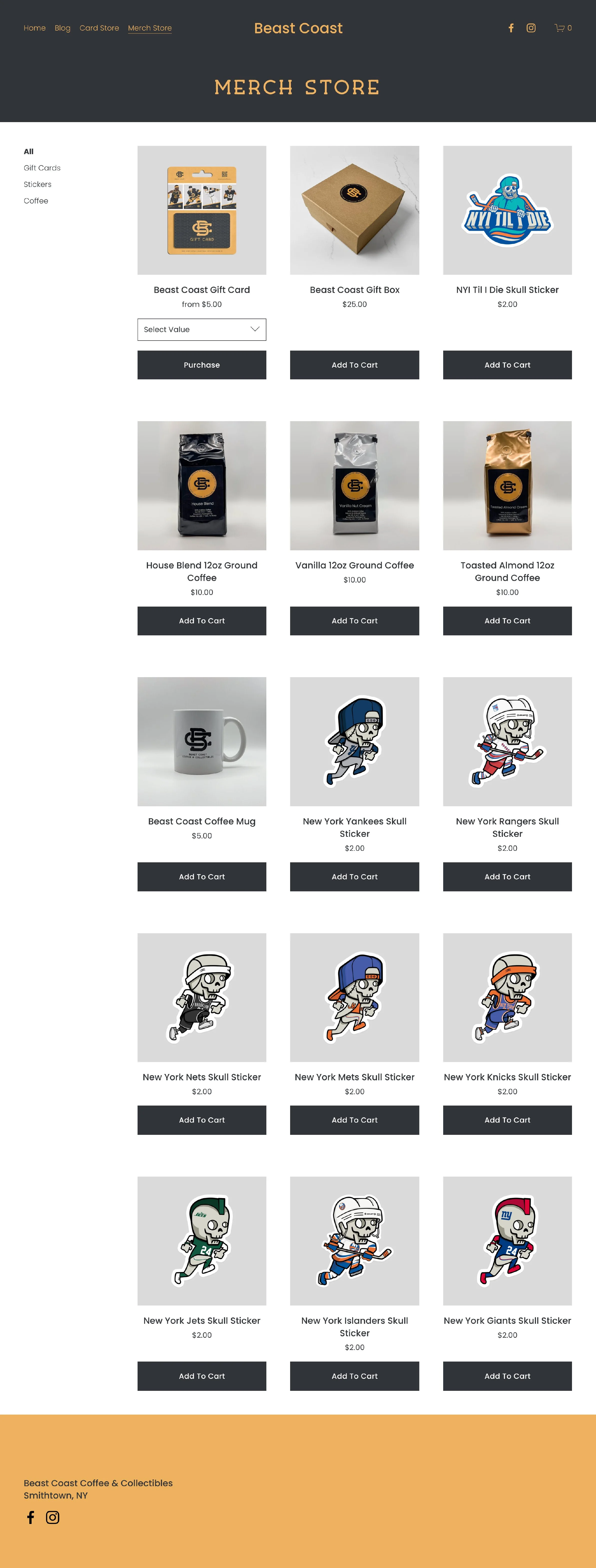 The Beast Coast website was built on the Squarespace platform. All design, illustration, copy etc. all done by myself, Chris Hoenigmann.
